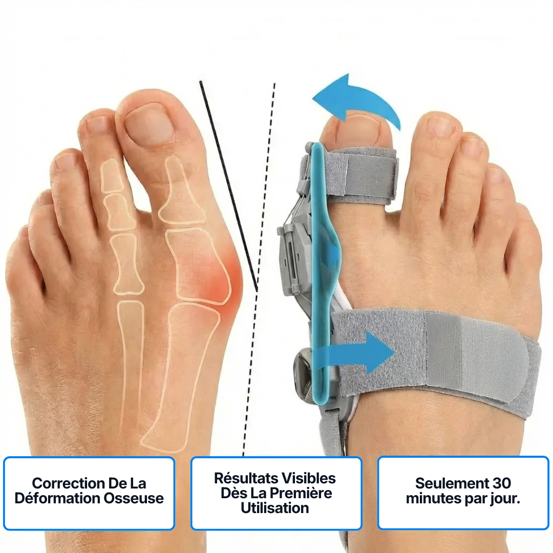 Dans le cas de déformation sévère du pied, nos utilisateurs remarquent une réalignement complet du gros orteil dans les 2 premiers mois après l'utilisation.